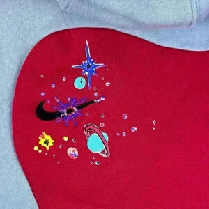 Nike Sportswear Club Galaxy Pullover Hoodie Sweatshirt Red Gray Embroidered Med