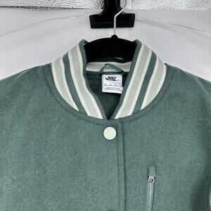 Nike Sportswear Destroyer Womens XS Jacket Wool Leather Collage Varsity Green Cream