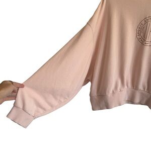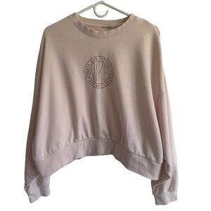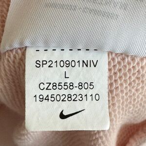 Darling blush pink relaxed fit sweatshirt from Nike with a retro embroidered logo at the front. Size Large (the brand + size tag is missing at the neck collar, but I photographed the size on the interior tag). In great preowned condition; no visible flaws.