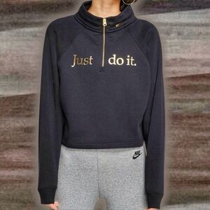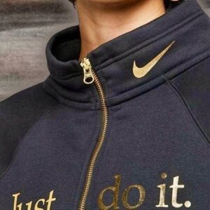 Nike Sportswear ‘Funnel-Neck 1/2 Zip Sweater’ in Black & Gold Size XS