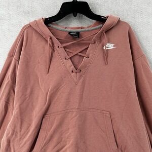 Nike Sportswear Hoodie Sweatshirt Women LG French Terry Salmon Lace-Up Oversized
