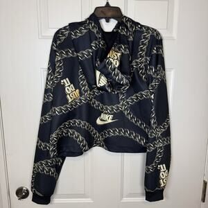 Nike Sportswear Icon Clash Chain Women Crop Top Hoodie Black Gold 2X