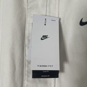 Elevate your winter and fall activewear game with this Nike Sportswear Men's jacket in size XL. The jacket boasts a solid pattern with a white color and is made of a polyester blend outer shell material that is both durable and comfortable. The mid-length jacket features a full zip closure and long sleeves, making it perfect for layering.