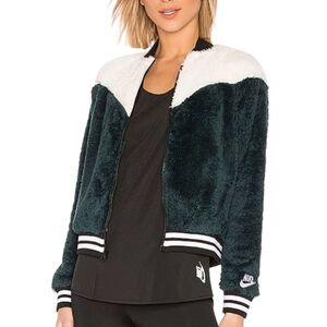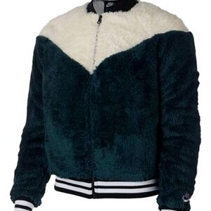 Nike Sportswear Midnight Spruce/Desert Sand-White Sherpa Bomber Jacket Sz M