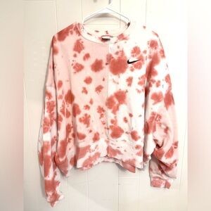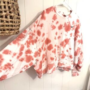 Nike Sportswear Oversized Crop Sweatshirt Tie-Dye Pink Sz L Athleisure Lounge