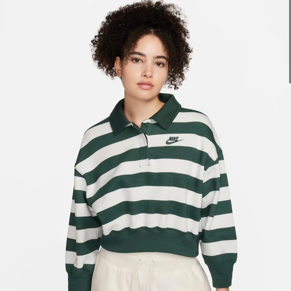 Nike Sportswear Phoenix Fleece Women's Oversized 3/4-Sleeve Striped Crop Polo in Pro Green and Sail. EUC! No signed of wear