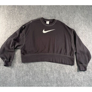 Nike Sportswear Swoosh Cropped Crew Black Fleece Sweatshirt Women’s Small