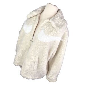 Nike Sportswear Swoosh Full Zip Sherpa Jacket - Size XL - Rattan / Sail