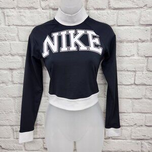 Nike Sportswear Team Long Sleeve High Neck Cropped Top Black White Logo XS