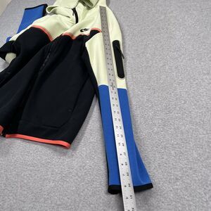 Men's Nike Sportswear Tech Fleece Hoodie Long Sleeve Full Zip Front Hooded Lime Ice Black and Signal Blue Performance Athletic Track Athleisure Sweatshirt Jacket. Model/style number CU4489-303. 66% cotton, 34% polyester.