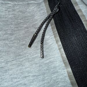 Men’s Nike Sportswear Tech Fleece Joggers, style CU4495-063, in dark grey heather with black detailing. Size Medium. Designed with a slim, tapered fit, ribbed cuffs, zippered pocket, and elastic waistband with drawcords for a secure fit. Pre-owned in very good condition. Please note: one of the metal tips on the zipper pull cord is missing, but it does not affect the functionality. See photos for measurements and details