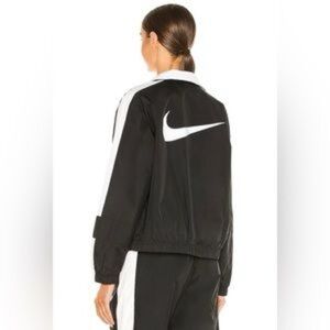 Cozy and carefree, the Nike Women's Black/White Sportswear Repel Jacket offers throwback style ready for cool-weather layering. Made with at least 75% recycled fibers, the woven fabric has a lightweight yet durable feel. Sweat-wicking mesh lining offers a breathable layer to keep you feeling dry throughout the day. Orig price $ 100 Recycled Woven Fabric This lightweight woven is made with at least 75% recycled fibers. Oversized Comfort Dropped shoulders and a relaxed fit through the body add to the overall coziness of this carefree style. 360 Degrees of Swoosh Printed Swoosh details at the chest, back and sleeve let you rep the brand in style. Stretch hem and cuffs provide a snug feel and help keep out the cold. The sweat-wicking mesh lining and woven fabric help keep it breathable. Oversized for a baggy, spacious feel