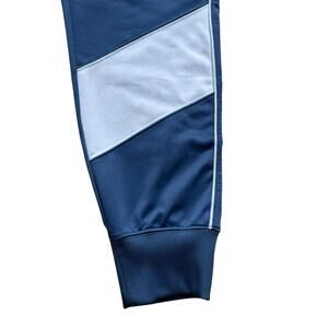 Featuring a bold blue colorblock design with contrasting white bdiagonal panels and white piping down the legs, these joggers blend retro vibes with modern comfort.