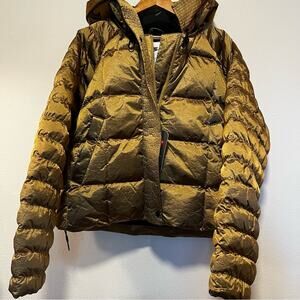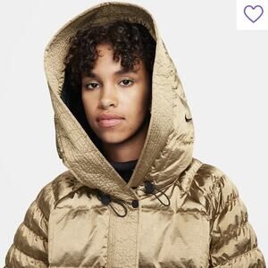 Nike Sportswear Women's Swoosh Puffer Shine PrimaLoft Jacket Large Gold Metallic