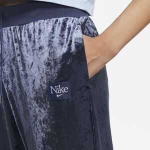 Kick back in the Nike Sportswear Velour Pants. The crushed velvet feel that's perfect for everyday wear. A roomy fit helps you move with ease while ribbed cuffs let your sneakers shine. Color: Thunder Blue/White.