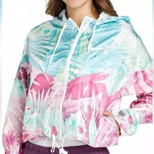 Nike Sportswear Women's Sz Small Tropical Floral Windrunner Crop Hoodie Jacket