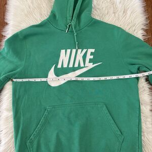 Nike Sportswear Y2K Hoodie Mens Medium Kelly Green Embroidered Swoosh Pullover. From the 2000s. Gray tag. The Nike and swoosh are both embroidered. See pics for measurements. Could be unisex. There is some slight discoloration on the right sleeve as shown in last photos, but this is not very noticeable. From a smoke free/pet free home