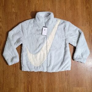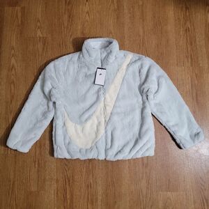 Nike Sportswear Faux Fur Swoosh Jacket Photon Dust Grey Giant Logo Dunk Low L