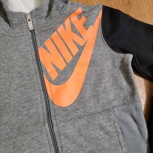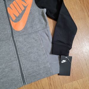 Nike Sportswear NSW Jacket Hoodie Gray Black Orange Fleece Unisex Kids Size 7 Ne