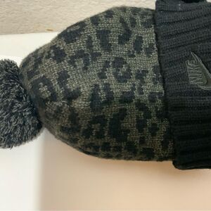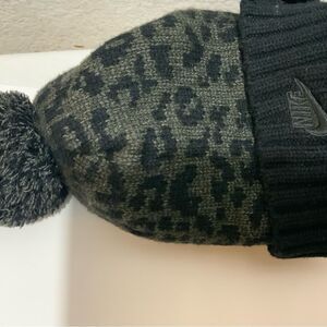 Nike Sportwear Black Leopard Womens Pom Beanie One Size