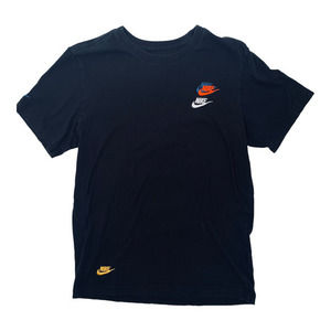 Nike Sportwear NSW Club Essentials T-shirt Multi Logo Embroidery Sz S. Such a cool and unique t-shirt. Embroidered Nike logos throughout the shirt.