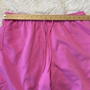 These shorts are new with tags men’s standard fit above knee length pink athletic shorts. They have two pockets in the front and feature a drawstring waist. There is one pocket in the back that snaps shut. See pictures for measurements and details.