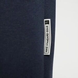 Nike Standard Issue label on dark blue material. Modern and versatile.