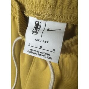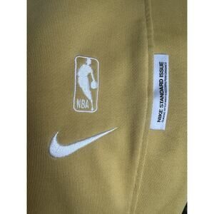 The Nike Standard Issue Dri-FIT Cleveland Cavs Men's Large Gold Joggers Sweatpants are officially licensed by the National Basketball Association (NBA). Featuring the Cleveland Cavaliers team logo, these sweatpants are designed for basketball fans who want to show their support in style. Made by Nike, a trusted brand known for quality athletic apparel, these sweatpants are perfect for wearing during the regular season games or as casual everyday wear. The gold color adds a touch of flash to your fan gear while the Dri-FIT technology ensures you stay comfortable during any activity. Embroidered logos, pockets, NEW WITHOUT TAGS
