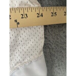 Jersey has some natural yelling on the mesh, some graphic blemishes on sleeves blue paint, as shown, see photos