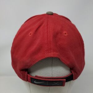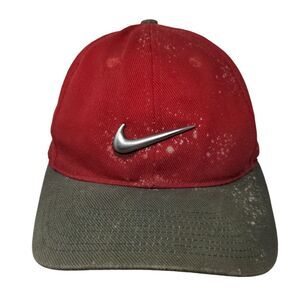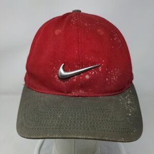 Nike Strapback Hat Red OSFA Emblem Embroidered Swoosh Vented Holes 6 Panel