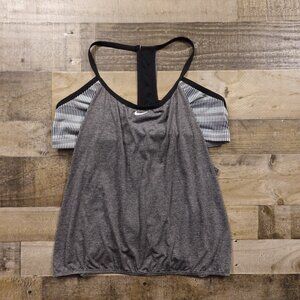 Nike Strappy Loose Fit Tank Top Women’s 2X Gray Black Built-In Shelf Bra