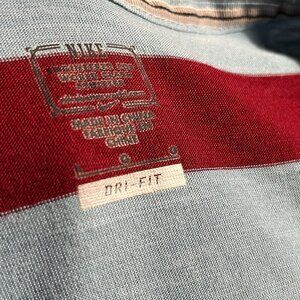 Nike Dri Fit short sleeve tee in baby blue burgundy stripes