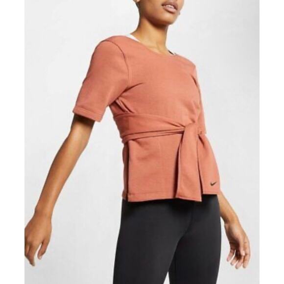 Nike Studio Yoga Training Top SS Wrap Rust Size Small