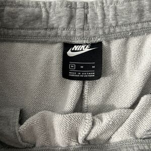 The Nike Sweatpant for Women in size M is a versatile and comfortable jogger style pant made from a fleece fabric blend of polyester and cotton. It features a drawstring closure, elastic waist, and tapered leg for a modern fit. This gray jogger is perfect for travel and casual occasions, offering breathability, moisture-wicking properties, and pockets for convenience. With its classic design and Nike branding, this pant is suitable for various activities like gym training, walking, cross-training, and running. Upgrade your activewear collection with this lightweight and cozy jogger.