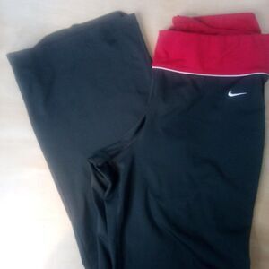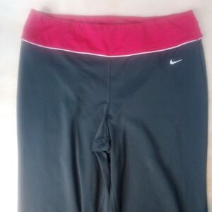 Nike Sweatpants Joggers Trainers Women - No Pockets, Size Large, Measures Elastic Waist(Flat)=17" Inseam=31" Front Rise=13" Bottom Opening(Flat)=10" - Excellent Condition, No Flaws - Gray Color Pants With Pink Trim