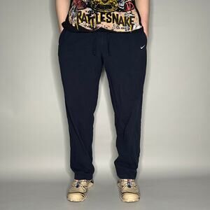 Nike Sweatpants Navy Blue Cotton White Swoosh Baggy Wide Leg