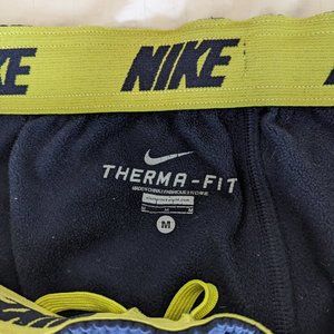 Nike Sweatpants Thermafit Navy and Yellow Striped. Good condition. Ties on bottom to make it more of a jogger. Good condition.