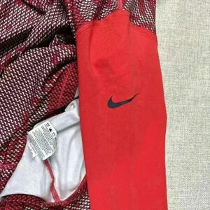 Nike Sweatshirt Womens Medium Dri Fit Pullover Cowl Neck Red Thumbhole Aztec