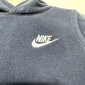 Nike Sweatshirt Long Sleeve Navy Hoodie White Swoosh Performance Boys sz Medium