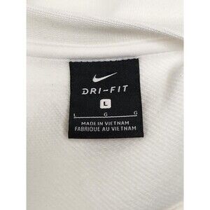Nike Sweatshirt Men's L White Dri-Fit "Just Do It" Arm Spell Out Crew Pockets