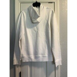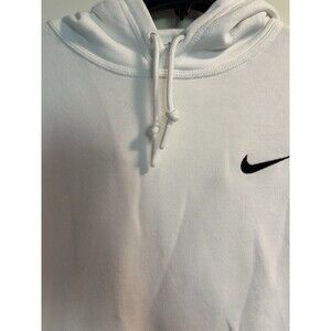 Nike Sweatshirt Mens Medium White Black Swoosh Fleece Pullover Drawstring Hoodie