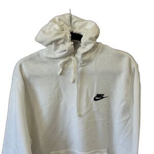 Nike Sweatshirt Men's Size M White Embroidered Swoosh Fleece Pullover Hoodie