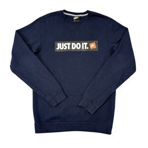 Nike Sweatshirt Mens Size Small Navy Blue Crew Neck Pullover Just Do It Casual