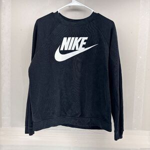 Nike Sweatshirt Spellout Center Swoosh Men's Medium Black Color Faded Streetwear