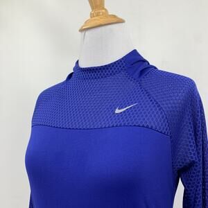 Nike Sweatshirt Women XS Extra Small Cobalt Dri Fit Mesh Panels High Neck Hoodie