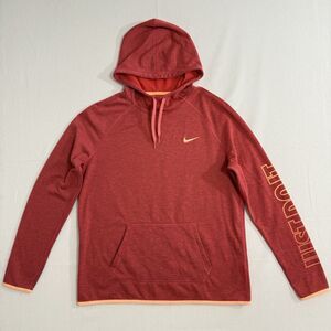 Nike Sweatshirt Womens Size Large Orange Red Pull Over Hoodie Dri-Fit