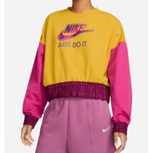 Nike Sweatshirt Womens XL Oversized Pullover Terry Nylon Mix Gold Pink Maroon Cropped Fit