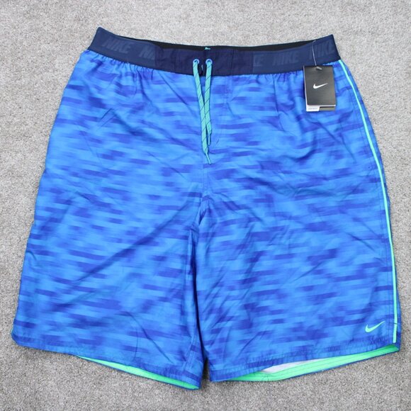 Nike Swim Board Shorts NWT Mens 2XL XXL Blue Geometric Mesh Lined Drawstring