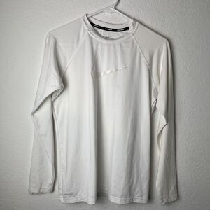 Nike Swim Shirt Mens Large White Dri-FIT Long Sleeve Rash Guard UPF 40+ Sun