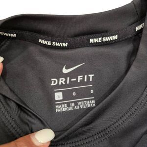 Nike Swim Shirt Womens Large Black Dri-Fit UPF 40+ Raglan Sleeve Rash Guard Retr